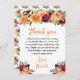 Autumn Burgundy and Orange Floral Bridal Shower Thank You Card
