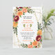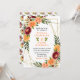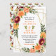 This fun and whimsical wedding invitation features watercolor burgundy red and orange flowers with foliage on a gold geometric frame. The text combines handwritten script and serif fonts for a stylish and modern look. This is perfect for an autumn fall rustic wedding.