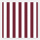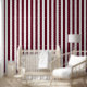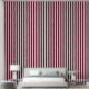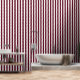 This peel and stick wallpaper features alternating white and autumn burgundy stripes.