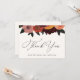 Thank You card features a cascade of watercolor blush, burgundy and orange florals for an autumn theme. Personalise with your information or click "Click to customise further" to edit font styles, size and colours. Can also be personalised on the back with your own typed message or delete this space to handwrite your own thank you.