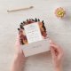 All in One Wedding invitation featuring a gold frame surrounded by autumn florals and greenery. Each card includes a perforated RSVP card that’s addressed and ready for your guests to send back in the mail. Customise with your information or click "click to customise further" to change the font style, size, colour or background colour.