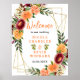 Autumn Burgundy Orange Floral Wedding Welcome Sign