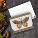 This vintage image has a colourful monarch butterfly done in blues, greys, and oranges. It has a matching border and the background is white. See my store Art by MAR for matching products with this design.
