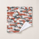 This contemporary camouflage design has splashes of terracotta red and stone grey in a pattern resembling rocky terrain—perfect for organic and nature inspired decorating styles.