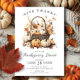 This rustic Thanksgiving dinner invitation featuring a basket of pumpkins sets the perfect tone for your festive gathering. Featuring warm autumnal colours and a charming design, it invites your guests to join in a celebration of gratitude and togetherness. The invitation provides ample space for essential details, ensuring that your loved ones feel welcomed and excited to share in the holiday feast.