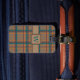 A soft raw umber base is crisscrossed by bands of port wine red, bright autumn orange, and rich jungle green in this pleasant plaid that combines trendy colours in a classic and cosy pattern perfect for fall. Customise this luggage tag with your initial on the front and details on the back to make finding your luggage easier when you travel.