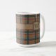 A soft raw umber base is crisscrossed by bands of port wine red, bright autumn orange, and rich jungle green in this pleasant plaid that combines trendy colours in a classic and cosy pattern perfect for fall. This mug is available in a variety of colours, sizes, and styles including travel mugs and steins. Customise the monogram on this mug with your initial to mark it as your own.