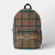 A soft raw umber base is crisscrossed by bands of port wine red, bright autumn orange, and rich jungle green in this pleasant plaid that combines trendy colours in a cosy pattern perfect for fall. Customise the initial on the front pouch of this backpack with your own monogram to make this accessory uniquely yours.