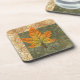 Set of 6 cork-back, high gloss plastic coasters with an image of a green, orange and yellow maple leaf on quilted green and brown. See matching square paper coaster. See the entire Thanksgiving Coaster collection under the HOME category in the HOLIDAYS section.