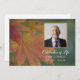 Invite guests to remember your loved-one after their September, October or November passing with the natural Autumn Coloured Leaves Celebration of Life Invitation. This woodsy custom funeral death memorial tribute invite features a close up digitally painted nature photograph of red, orange and yellow coloured Korean Maple leaves on the tree with a blurred green woodland background. Available as a printed invitation for mailing and/or as a digital download for easy sharing digitally online.