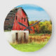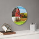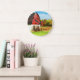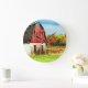 Beautiful and extremely colourful wall clock of a country barn with a picturesque autumn landscape in the background.