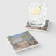 The coasters are gorgeous, a quality feel and heavy weight. They look like a precious archeological find. A rustic stone juxtaposed with a modern floral black and white print. I like the way the print goes slightly imperfect on the cut stone edges giving them a kind-of natural beauty.