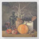 Autumn Decorations on Table, Pumpkin, Fruit, Drink Stone Coaster