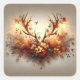 Antlers adorned with vibrant autumn leaves and flowers create a striking focal point while lanterns add a touch of warm illumination