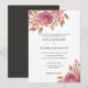 Elegant and romantic fall wedding invitations in classic fall colours feature watercolor autumn and flowers leaves framing your wedding details in classic off-black lettering.
