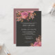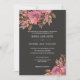 Elegant and romantic fall wedding invitations in classic fall colours feature watercolor autumn and flowers leaves framing your wedding details in classic white lettering on dark background.