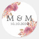 Designed to match our Autumn Dream collection, round stickers feature a bouquet of watercolor flowers in elegant classic autumn shades of pastel lavender purple gold, yellow and orange with your initials or monogram and wedding date.
