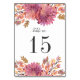 Flowers and leaves in classic autumn colour encircle this elegant wedding table number.