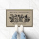 Autumn Elegance Welcome Doormat: Welcome guests with a touch of rustic charm with this personalised fall-themed doormat. The design features the phrase "Welcome to Our Home" at the top, while the centerpiece showcases two beautifully detailed pumpkins accented by elegant scrollwork and a vibrant array of autumn leaves. A customisable space below allows you to add your family name or personal message, making this doormat a warm and inviting addition to your entryway. The rustic faux burlap texture adds an earthy, vintage feel, perfect for embracing the fall season. Ideal for outdoor use, this doormat is not only decorative but also durable for daily wear.