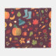 Autumn elements, dark background, vintage fleece blanket