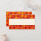 Fall leaves blank place cards.  Little flat cards have a bright orange design with a background of red, yellow, orange and green leaves.  Hand-write a guest's name on the solid, off-white panel.  Include a table number if using as escort cards.