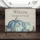 Happy Fall Personalised Custom Autumn Fall Blue Pumpkin Rustic Cute Grey Wood Doormats & Rug