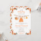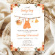 This cute and whimsical watercolor baby shower invitation features a baby clothes line with orange floral arrangements . The text combines handwritten script and sans serif fonts for a stylish and modern look. This is perfect for an autumn fall baby shower.