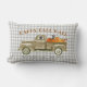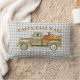 Autumn Fall Dogs and Pumpkins in Old Pickup Truck Lumbar Pillow welcomes all with a "Happy Fall Y'all" greeting. Three family dogs riding in the old pickup truck bring a smile to everyone. This fun rustic design is shown on a background of gray check, and the family name and est. date is showcased below the truck. This pillow will blend with your existing decor and update your fall look. A gray linen look back on the pillow is accented with "grateful and blessed. All text is easily edited on both the front and back. On-trend grays and golden pumpkin oranges welcome the season and set the stage for harvest. This comfy pillow is part of our Embrace Autumn Collection in our store where you will find more just right home decor to layer on the warmth of the season.