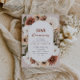 50th wedding anniversary invite with script lettering, tropical greenery and pink flowers. The text and colours can be edited.