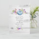 Sweet peas and pumpkins rustic wedding invite with hues of pink, purple, violet and blue and elegant handwriting typography customisable to your event specifics. The QR code on the reverse directs to your wedding site where people can learn more and rsvp.