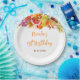 This beautiful and elegant plate features watercolor pomegranate, apples, grapes, mushrooms and foliage. The text combines handwritten script and serif fonts for a stylish and modern look. This is perfect for a rustic autumn fall birthday.