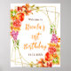 This beautiful and elegant welcome sign features watercolor pomegranate, apples, grapes, mushrooms and foliage. The text combines handwritten script and serif fonts for a stylish and modern look. This is perfect for a rustic autumn fall birthday.
