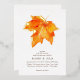 This luxurious foil gilded wedding invitation is perfect for a romantic, elegant autumn wedding. The design features a maple leaf, watercolored in orange brownish autumnal colours with veins and outlines indicated with gold foil. On the back your guests find all further information about the Reception, a Hotel to stay and a link to your website. This Wedding Invitation Card is part of our "Let's Fall in Love This Autumn - and Get Married!" - Wedding Collection - Find there also matching "day-of"-stationery and more! Edit all the text via the easy-to-use personalisation menu.