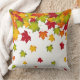 This throw pillow is shown with a pretty autumn fall leaves print on a white colour background.