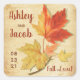 Autumn Fall Maple Leaves Wedding Favour Save Date Square Sticker
