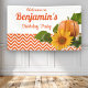Cute banner for a pumpkin theme party. Customise it with your child's name.