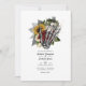 Vintage autumn-fall floral gothic skeleton hand wedding invitation customisable to your event specifics. Ideal for any given theme or garden wedding. The QR code on the reverse directs to your wedding site where people can learn more and rsvp.
