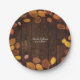 Autumn Fall Rustic Golden Leaves on Wood Wedding Paper Plate