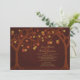 A gorgeous autumn wedding invitation featuring two barren trees with a few beautifully covered fall leaves. The colours are brown, orange, yellow. In the centre of the invitation is the place to input wedding information. You can customise the card however you like.