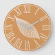 Get an elegant autumn style in your home with this white leaf skeleton and rustic orange background clock with white roman numerals.