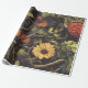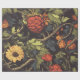 Dramatic floral pattern with lush blooms in fiery orange, red, white, and golden yellow against a deep black background. This moody botanical design features detailed flowers and flowing gray foliage with rich autumn colors that create striking contrast. Perfect for fall celebrations, elegant occasions, and anyone who loves bold, dramatic floral designs.