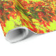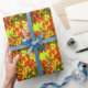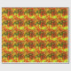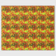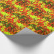 Fiery orange and gold leaves set against a vivid green background creates an abstract autumnal pattern on this bright wrapping paper.