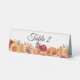 Present you wedding guests with these personalised place cards/ table tents for dinner, seating, escorts and more. This wedding table tent features watercolor flower bouquets in the perfect autumn colours of orange, blush, yellow, red, and pink with gold foil accents. This is perfect for classic, contemporary, and vintage wedding styles for the autumn season. Browse the selection of coordinating invitations, RSVP cards, signs, and more.