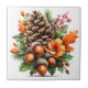 This lovely ceramic tile is shown with a beautiful pinecone and acorns floral art print.