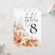 Autumn Floral Foliage Table Number. A beautiful autumnal border along the bottom and left hand side in shades of terracotta, browns and creams is above the table number which you can easily personalise. The same design is on the other side.