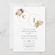 This elegant autumn wedding invitation features monograms inside two golden circles entwined together. Fall floral bouquets decorate the gold circles. The back of the card features a pretty watercolor floral pattern in autumn shades of plum, boysenberry, blush pink, dusty red, and golden yellow. Personalise with your wedding details. Matching wedding stationery available in our "Autumn Elegance" collection.