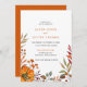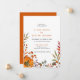 Elegant Hand painted watercolor Fall/Autumn foliage and pumpkin wedding invitation in orange, gold and rust colour leaves.