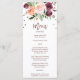 This autumn floral rose gold light dinner menu card is perfect for a summer or fall wedding. The design features a stunning bouquet of blush, orange peach, and marsala burgundy flowers with faux rose gold foil typography and confetti. The backing features a coordinating flower arrangement with gorgeous wedding typography.