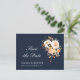 watercolor fall burgundy, blush and gold flowers with white script design and navy blue colour. You can edit the text and colours.