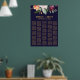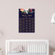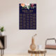 This autumn floral seating chart poster is perfect for a fall wedding. The design features a stunning bouquet of blush, orange peach, and marsala burgundy flowers with faux gold typography. This wedding poster includes enough room for over 200 guests. In addition to the placement of each guest, personalise this sign with the names of the bride and groom and the wedding date. This seating chart can be used to organise your guests by table number or alphabetically.